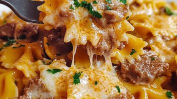 Cheesy Garlic Parmesan Beef Bowtie Pasta Skillet