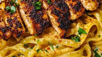Spicy Blackened Chicken with Creamy Parmesan Garlic Linguine