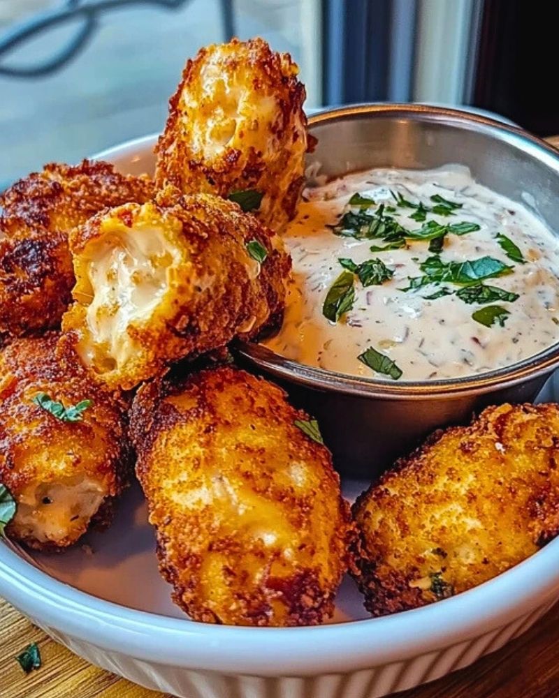 Cheesy Jalapeño Ranch Chicken Poppers with a Creamy Dip
