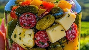 Easy Marinated Cheese Appetizer with Salami & Pickles