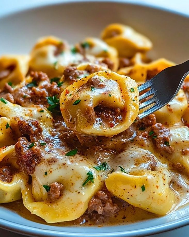 What makes this recipe irresistible is the balance of texture and flavor. The tortellini stays pillowy and firm, while the beef adds heartiness and bold seasoning. And that sauce—rich, creamy, and loaded with melted provolone—ties it all together for a dinner that feels both gourmet and deeply satisfying. Ideal for a chilly night or when you need a fast weeknight dinner that doesn’t skimp on flavor.