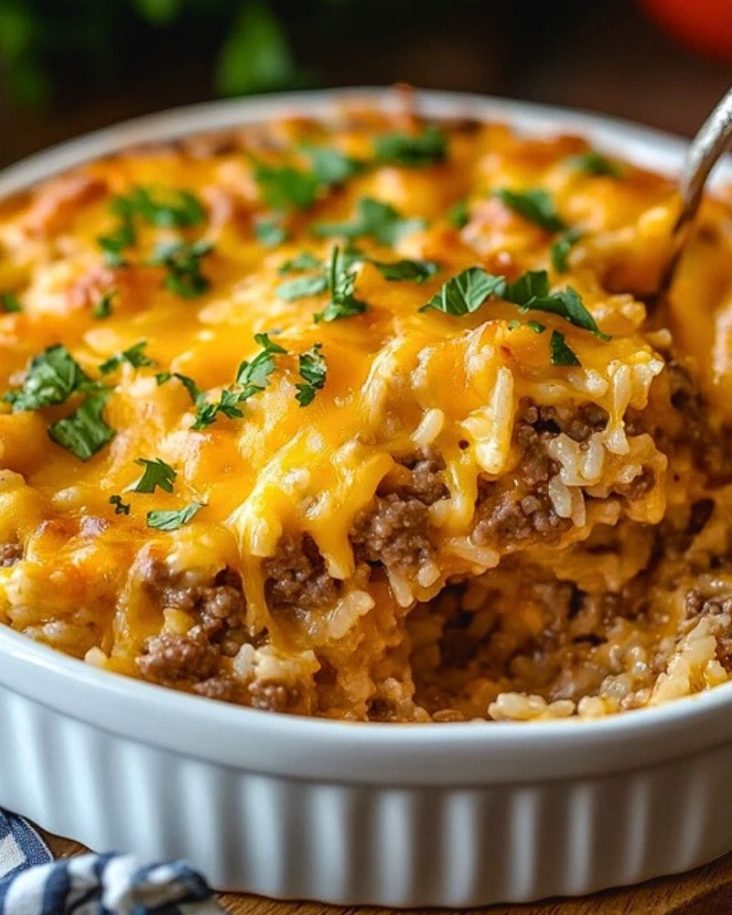 There’s something undeniably comforting about a hot, bubbling dish of cheesy hamburger rice casserole coming straight out of the oven. This classic comfort food combines tender ground beef, fluffy rice, melty cheddar cheese, and a savory blend of seasonings all baked to perfection. It’s warm, satisfying, and deliciously hearty — perfect for a cozy family dinner or a weeknight meal when you want something quick and easy.