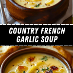 Perfect for a chilly evening or a soothing weekend lunch, this soup pairs beautifully with crusty artisan bread or a sprinkle of aged cheese. Whether you’re looking for easy dinner ideas, a healthy snack option, or a quick comfort food fix, this Country French Garlic Soup is a heartwarming choice that satisfies all your cravings with every velvety spoonful.