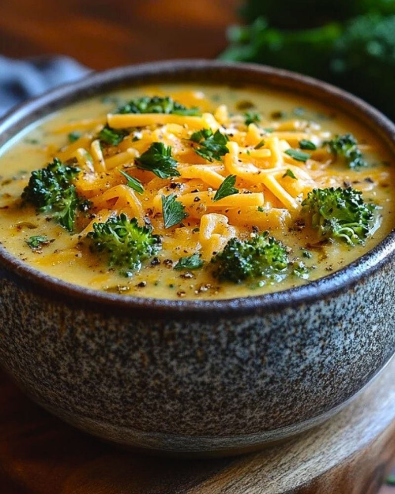 Rich, comforting, and loaded with flavor, broccoli cheddar soup is the perfect dish for chilly days. With a creamy cheddar base, tender broccoli florets, and soft chunks of potatoes, this soup delivers a satisfying combination of textures and tastes. The sharpness of the cheddar cheese balances the mild sweetness of the vegetables, while a hint of seasoning enhances every spoonful.