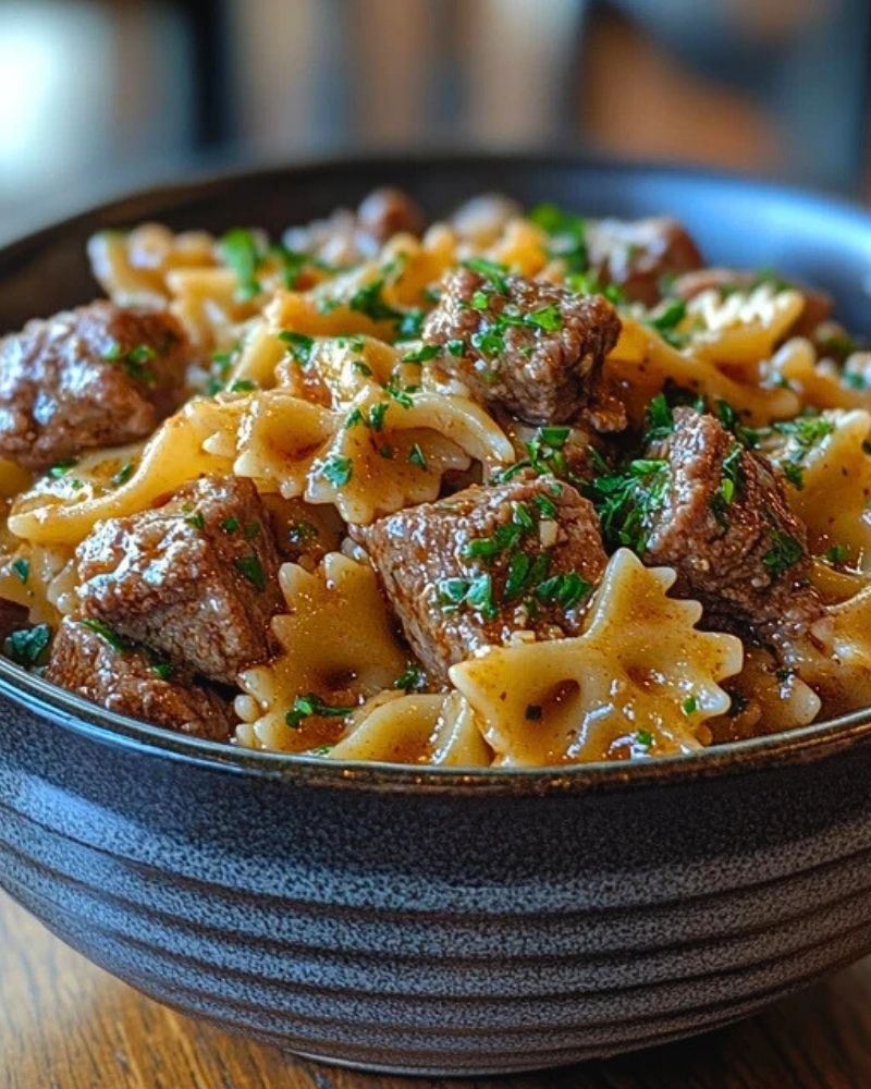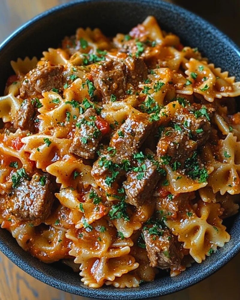 Looking for a hearty, comforting, and easy dinner idea? This beef bowtie pasta is the perfect meal! Tender chunks of beef are slow-simmered in a rich, savory tomato sauce and tossed with perfectly cooked bowtie pasta. The sauce clings to every bite, delivering bold flavors in every forkful. Finished with Parmesan and fresh parsley, this dish is an absolute crowd-pleaser. Whether you need a quick weeknight dinner or a satisfying meal to impress, this one-pot pasta recipe is a must-try!