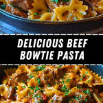 Tender beef, rich tomato sauce, and perfectly cooked bowtie pasta come together in this hearty dish that’s both comforting and full of flavor. The slow-simmered beef absorbs the savory goodness of the sauce, making every bite melt in your mouth. The bowtie pasta, with its delicate ridges, holds onto the delicious sauce, ensuring each forkful is packed with taste.