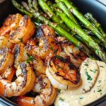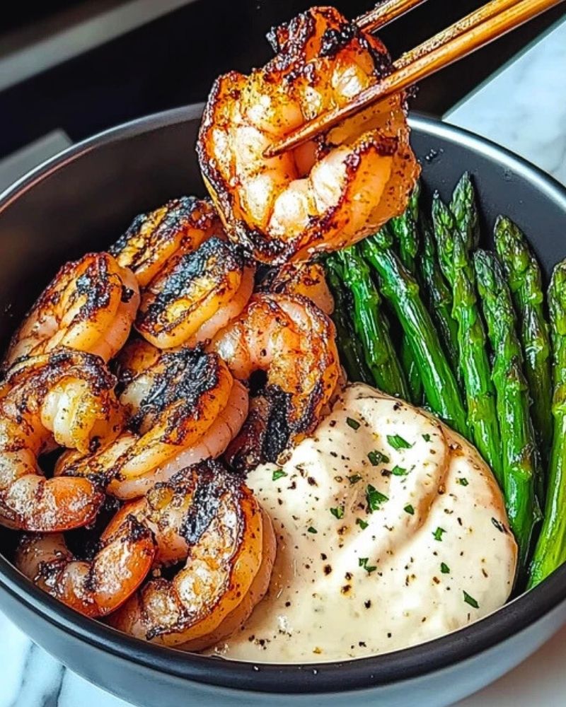Looking for a dish that’s fresh, flavorful, and absolutely stunning on the plate? This Grilled Shrimp Bowl with Asparagus & Creamy Garlic Sauce is the ultimate blend of healthy and indulgent. With perfectly charred shrimp, vibrant green asparagus, and a luscious garlic sauce that brings it all together, it’s the kind of meal that makes you look forward to lunch or dinner.