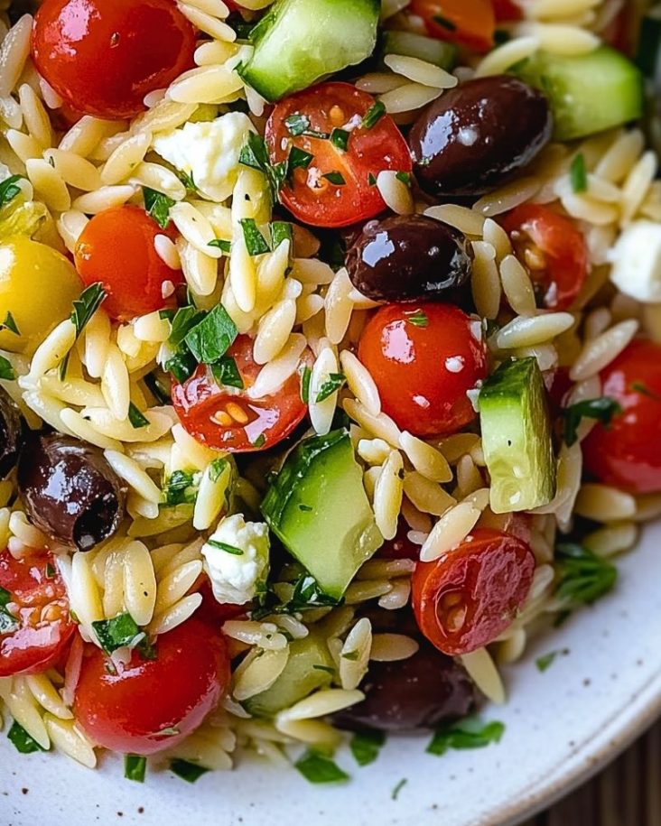 Vibrant, fresh, and bursting with Mediterranean flair, this Mediterranean Orzo Pasta Salad is a summer essential that fits right into any picnic basket or backyard barbecue. With tender orzo pasta, juicy cherry tomatoes, crisp cucumbers, salty feta, and bold Kalamata olives—all tied together with a zesty lemon-herb vinaigrette—this dish is a colorful celebration of bold flavors and wholesome ingredients.