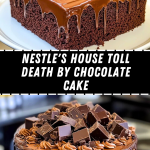 Rich, decadent, and utterly indulgent—Nestle’s House Toll Death by Chocolate Cake is a dessert that lives up to its dramatic name. Every slice delivers a triple hit of chocolate: a moist cocoa-infused base, a velvety ganache glaze, and a generous crown of chunky Nestlé Toll House chocolate pieces. This is not just any cake—it’s the ultimate chocolate lover’s fantasy. Whether you’re celebrating something special or just need a little extra sweetness in your day, this cake makes a bold, beautiful statement on the table.