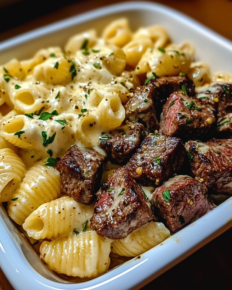 Imagine buttery seared steak bites nestled on a bed of creamy shell pasta, coated in a luxurious garlic butter Alfredo sauce. This dish is the perfect combination of elegance and comfort, turning an everyday dinner into a steakhouse-style experience right at home. The shell pasta catches every drop of sauce, while the steak provides savory depth with every bite.